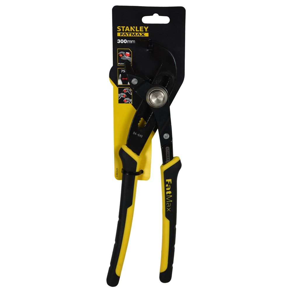 The 0-84-649 Multigrip Groove Joint Pliers from Stanley have induction hardened jaws for increased wear and durability and ergonomic bi-material handles which provide a comfortable controlled grip. Fatmax® multi-grip groove joint plier Push lock adjustment button Drop forged induction hardened jaws 17 button locked positions Optimised jaw geometry for multiple gripping application