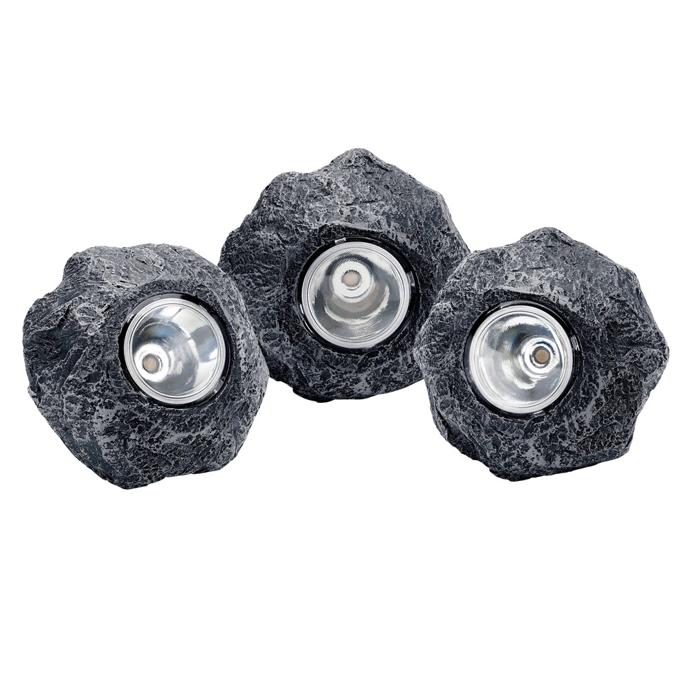 The Pontec PondoStar LED Rocklight 3er set is equipped with energy-saving LEDs. This reduces the energy consumption of the rock lights to only 3 x 1 watt power consumption. Thus the entire garden can be immersed in soft light from the terrace over the bed to the pond. The lamps can be permanently used under water (protection class IP 68). The special highlight is the optics: The warm-white glowing LEDs (3,000 Kelvin color temperature) are cast in year-round weatherproof polyresin. This gives them a timeless attractive slate look, suitable for integration in all gardens. The set includes a transformer and a 9 m cable.