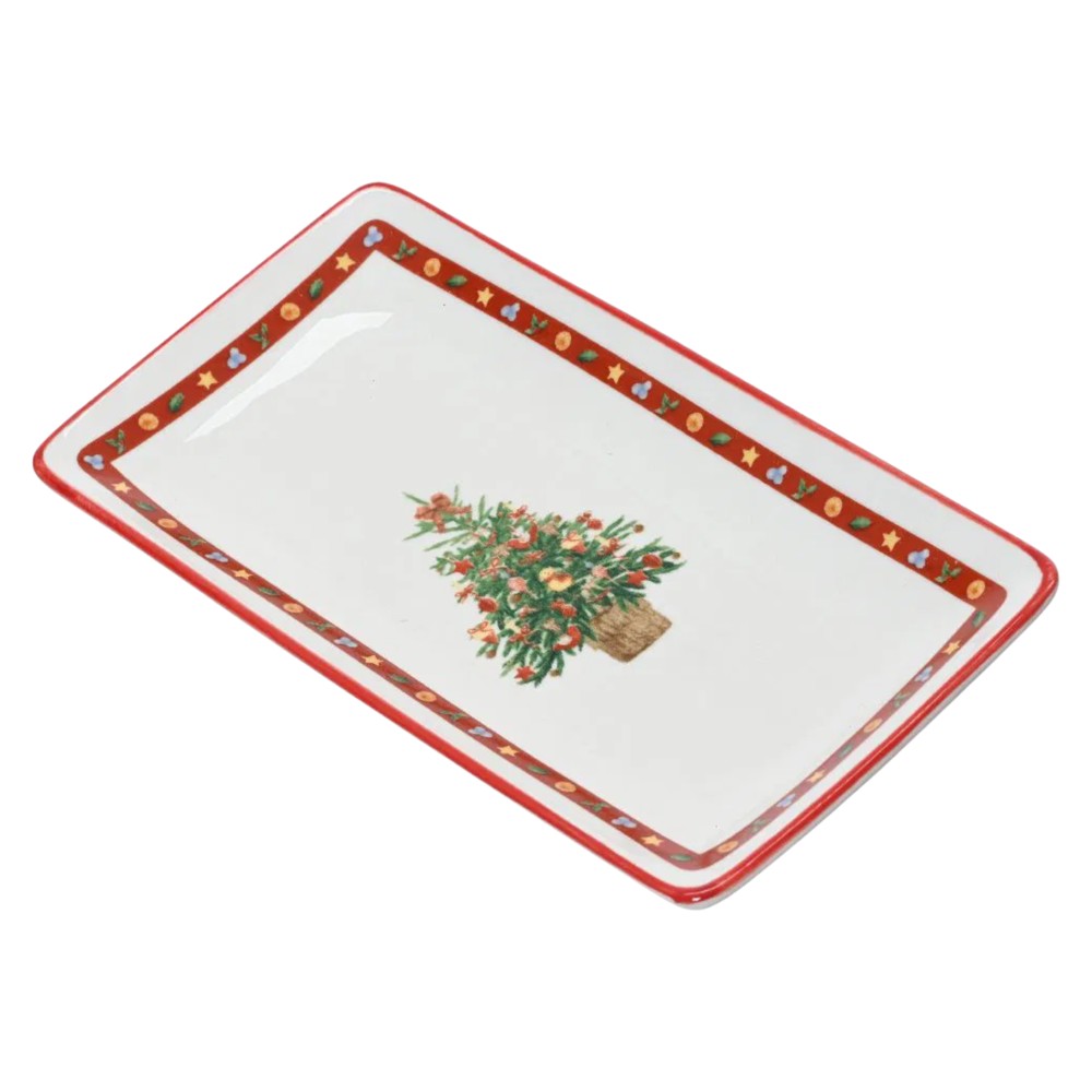 Porcelain plate with Christmas motifs, white and red color, L9.3-W18-H1.5cm