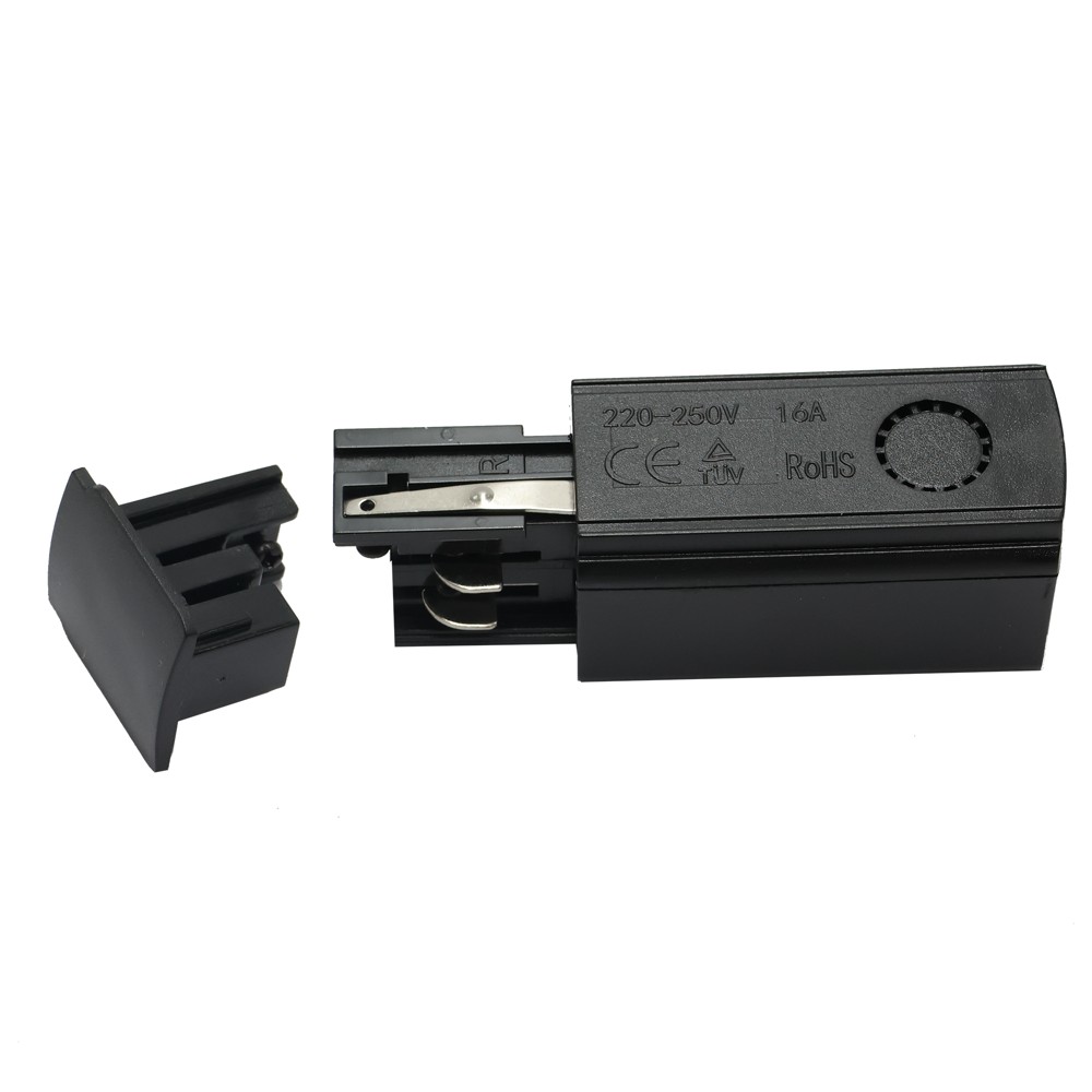 Power supply socket for 4 wires Braytron track rail, black, plastic, 45.5x35.5x32.5 cm.