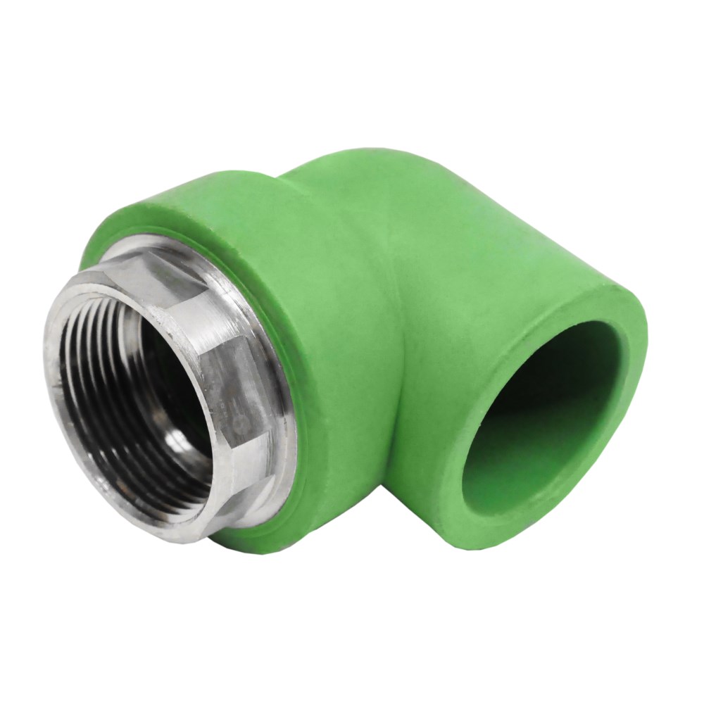 Elbow PPR pipe to link steel pipe, F 40X1/4" with angle 90°, Elbow for interior hot and cold water distribution systems in buildings and floor & central heating systems, air ducts or, if applicable, other use in industry and agriculture. Manufactured from finest quality plastic, this range exhibits superb durability.