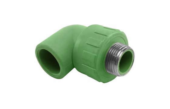 Elbow PPR pipe to link steel pipe, M 25X3/4" with angle 90°, Elbow for interior hot and cold water distribution systems in buildings and floor & central heating systems, air ducts or, if applicable, other use in industry and agriculture. Manufactured from finest quality plastic, this range exhibits superb durability.