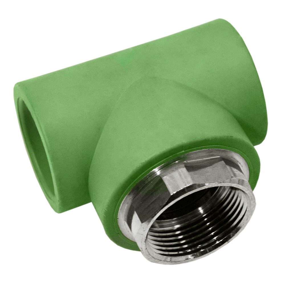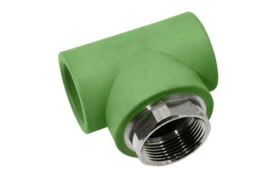 TEE PPR pipe to link steel pipe,F 50X1-1/2".Designed to join 3 lengths of pipe in a 90 degree branch connection.Plastic piping for interior hot and cold water distribution systems in buildings and floor & central heating systems, air ducts or, if applicable, other use in industry and agriculture. Manufactured from finest quality plastic, this range exhibits superb durability.