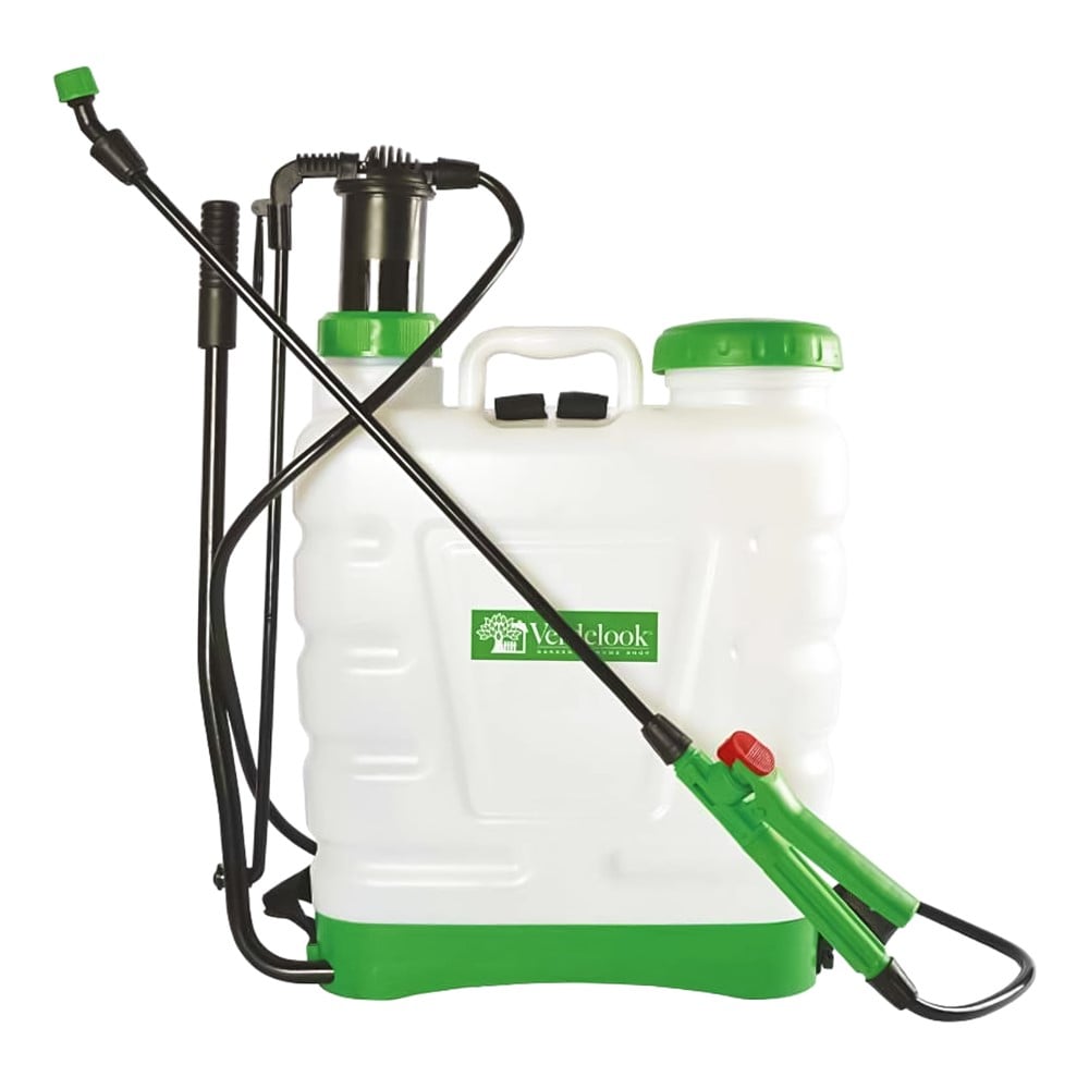 Backpack spray pump, made of PVC for spraying plants. Ideal for vegetable garden or yard. Fuel tank capacity: 16 liters Lancia Length about 150 cm by 70 cm plastic tube around with spare seals. 4 nozzles included: cone, fan, double cone, with 4 holes. Do not use solvents or flammable substances. Suitable for: water, fertilizers, pesticides and herbicides.