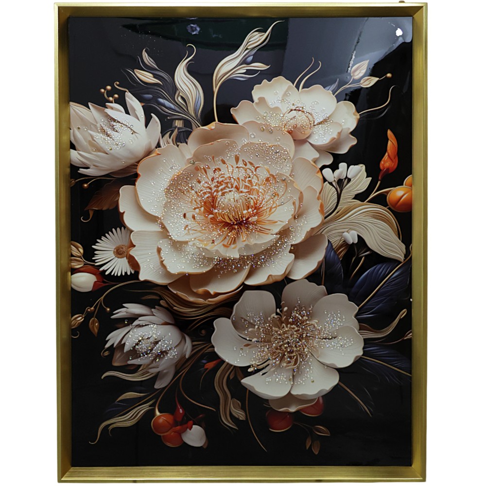 The gold-colored MDF framed painting is a luxurious decorative element that adds a detailed touch to the decoration of your premises. Crafted with great finesse and with several selected colors, which offer the freshness of flowers and convey positive energy to the premises you will decorate. An excellent choice with a lot of class and elegance that will look nice in various large or even small spaces.
