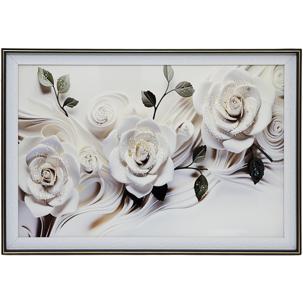Printed picture, Roses, mdf frame, white/black, 42xH62 cm