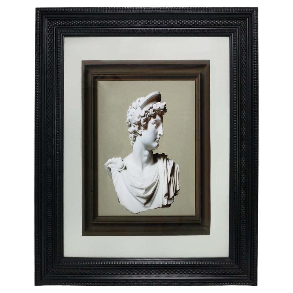 Printed painting "Statue", with dimensions 39x49 cm, placed in a black MDF frame. The details of the painting are in shades of beige and brown, creating a warm and elegant contrast with the black frame. This refined design brings a calm and artistic atmosphere to any environment, whether in the living room, office or hallway. An ideal choice to add character and style to your space.
