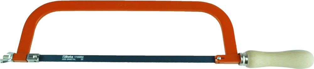 Adjustable Hacksaw 12''(30cm). The frame is made with heavy duty solid steel and is plated with nickel for durability. The high-impact cushioned wood handle offers comfort and control. This saw conveniently adjusts to 4 cutting positions to allow for many uses. It is plated to resist rust.