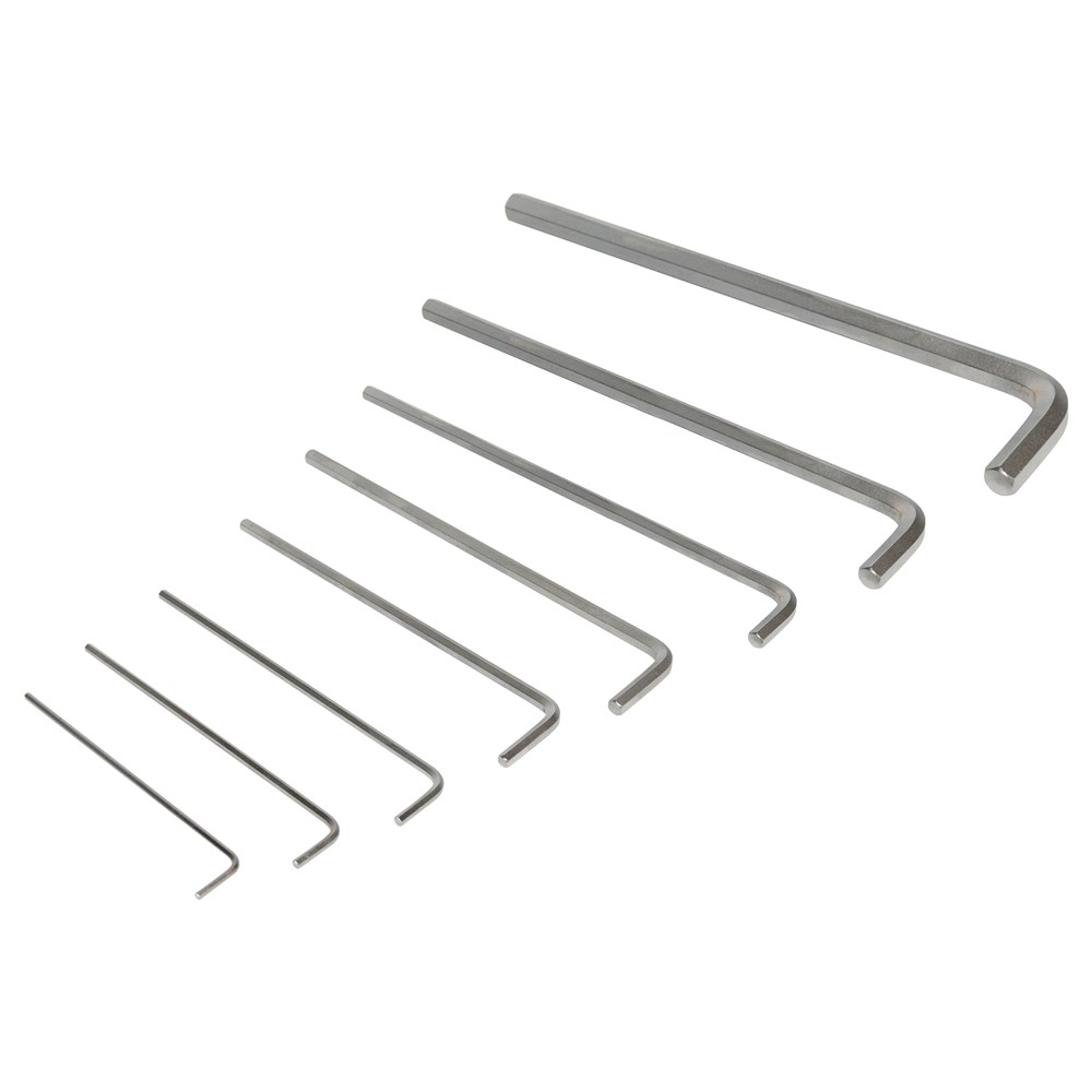 This profesional set of 8-Piece allen Keys Set is designed to easily tighten and loosen hex screws. The hex keys are crafted with quality steel for durability and precision. The sizes included are from 3 to 10mm. The set includes a storage holder with size markings for easy identification.