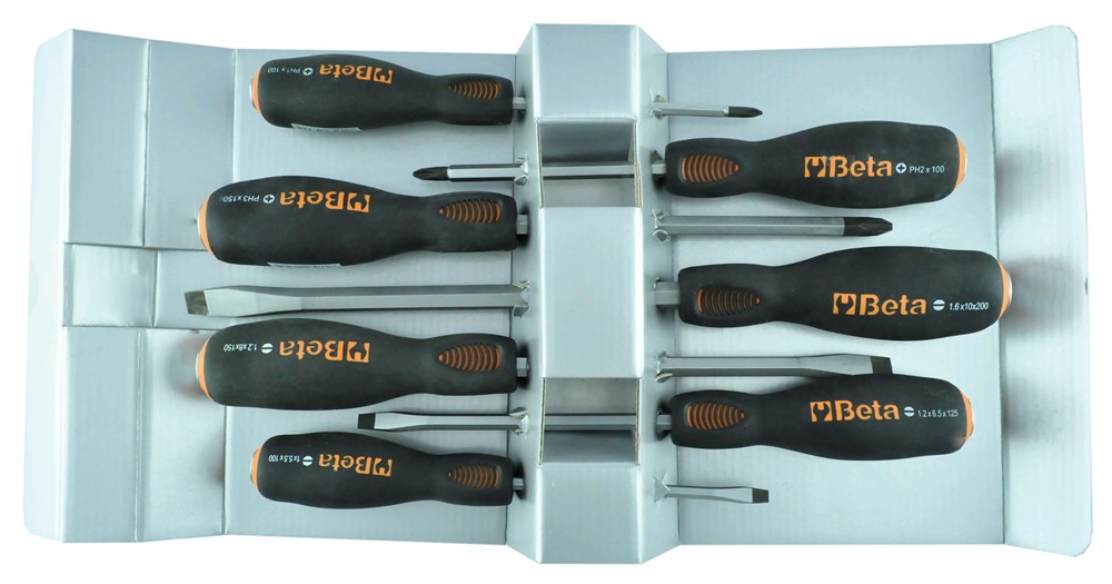 Professional screwdriver set, Beta, 1243/D7, S 1x5.5x100, 1.2x6.5x125, 1.2x8x150, 1.6x10x200 mm, PH1x4,5x100, PH2x6x100, PH3x8x150 mm, Cr-V