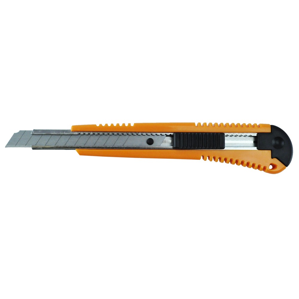 The 9mm Snap Knife has a durable, narrow body design for strength and maneuverability. Its metal body is designed to be rust-resistant, and also features a ribbed handle. Integrated blade snapper for safe and easy blade snapping. Ribbed handle for grip and control. Includes one 9mm snap-off blade.