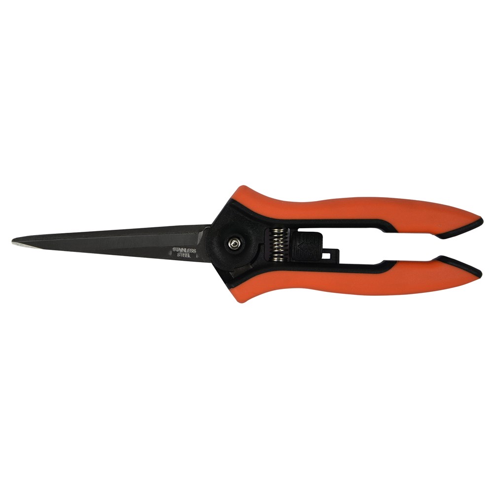 Scissors with 16.5cm size used for cutting flowers, and for harvesting the grapes and fruit trees. Is made of special steel material surface against contagion. It has a handle scissors egonomike which is as appropriate while working. With the safety device that can be closed scissors can be stored easily and safely.