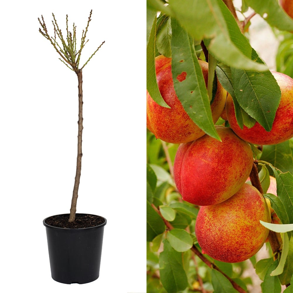 Prunus persica nucipersica has been in cultivation since its discovery in New Zealand in the late 1800’s. It is still prized for outstanding flavor, sweet and juicy white flesh and low chill requirement that allows it to grow in a wide range of climates. When planting, keep the base of the trunk exposed. Best in fertile, well-drained soil. Watering regularly until established. Prune when dormant, in late autumn or late winter. Apply a complete fertilizer formulated for fruit bearing varieties.