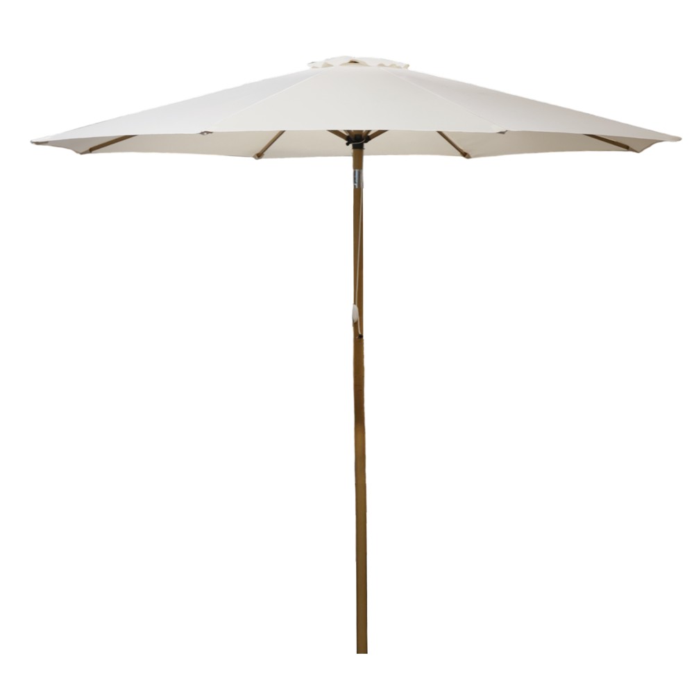 Pull up outdoor tent with metal structure, with dimensions D=300 cm and height H=245 cm. It is made with a durable metal construction, with a wood imitation color finish that gives it a natural and aesthetic appearance. The cover is in light beige, creating a bright and pleasant environment. Suitable for use in outdoor environments, offering stability, functionality and resistance to atmospheric conditions.