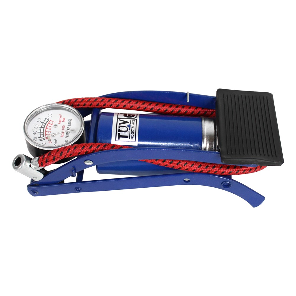 Pumps pedals for inflation, With frame and pumping body coated steel fire, accompanied by pressure gauge and