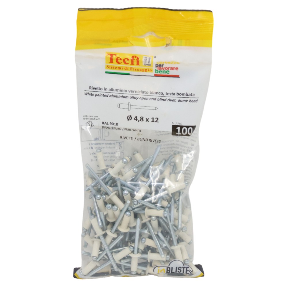 pure white dome blind rivets, al/zp steel RAL 9010, Ø 4,8x12mm, Bag 100