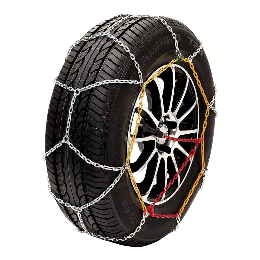 The diagonal crossmember pattern provides outstanding traction and durability. A split outside cable with two fastening positions allows for easy installation without moving the vehicle, and there is no need to stop and retighten. Compatible with ABS brake systems.