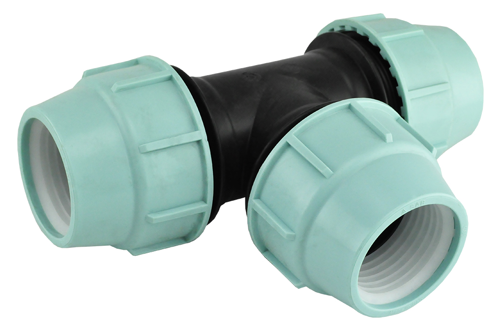Tee with faucet of PP 50x50x50 mm with angle 90°. Used to installations angular water supply infrastructure lines, in irrigation and agricul, etc. The tee enables network branching 90° angle. The tee network connects three pipes through coercive mechanical faucet. Manufactured with European standards, resistant to corrosive materials designed to withstand pressure up to 10 Bar.