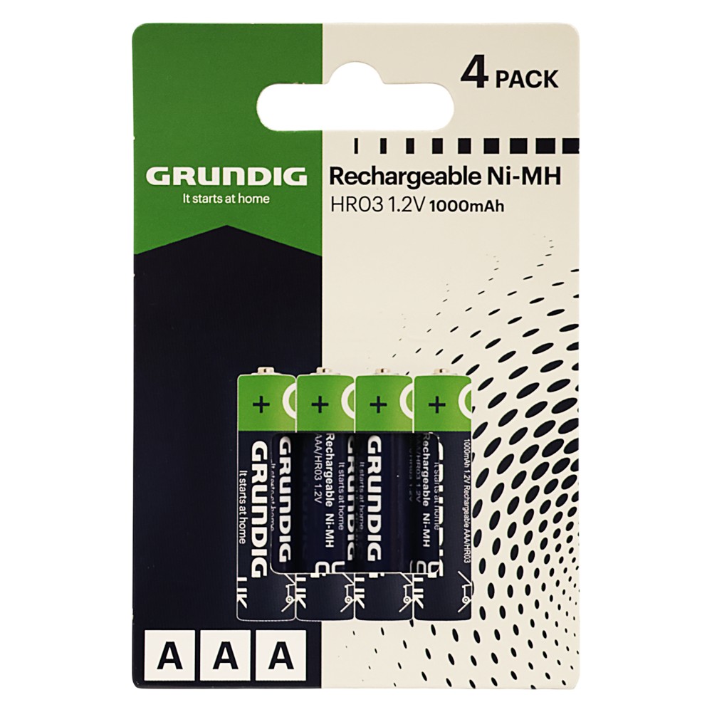 Rechargeable batteries, Grundig, AAA, 1.2V, 4 pcs/pack, 1000mAh