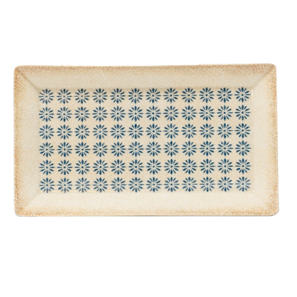 Rectangular flat plate Kimi, porcelain, beige with decor, 26x15 cm