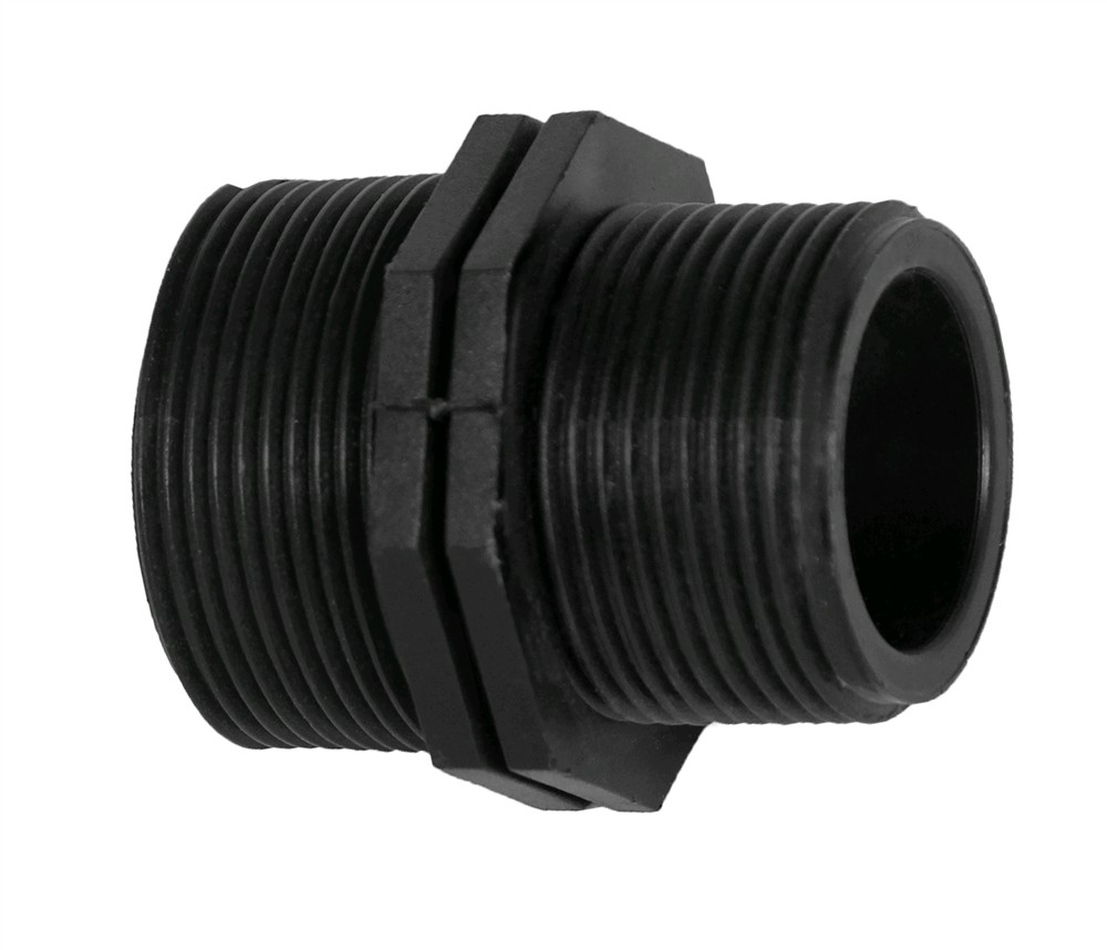Reducing nipple of PP 1-1/2x1-1/4" male. Used to installations water supply infrastructure lines, in irrigation and agricul, etc. Reducing nipple with male fillet enables joining the network of pipes or different fitting threading through, for joining the fillet recommend tu use teflon. Manufactured with European standards, resistant to corrosive materials designed to withstand pressure up to 10 Bar.