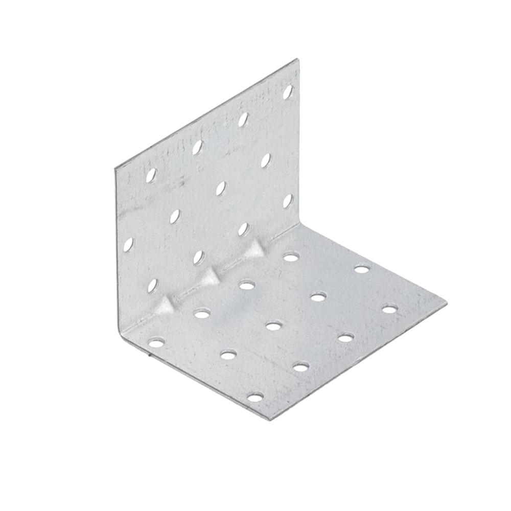 Reinforced perforated angle bracket, made of galvanized zinc material, with dimensions of 4x4x6x0.15 cm, in gray color, equipped with zinc powder outer coating, which protects it against corrosion and rust. It can be used to enable the best possible connection of wooden elements with each other or the connection of the wooden elements with the walls and floor. This product is suitable for use in both standard systems and individually designed connectors.
