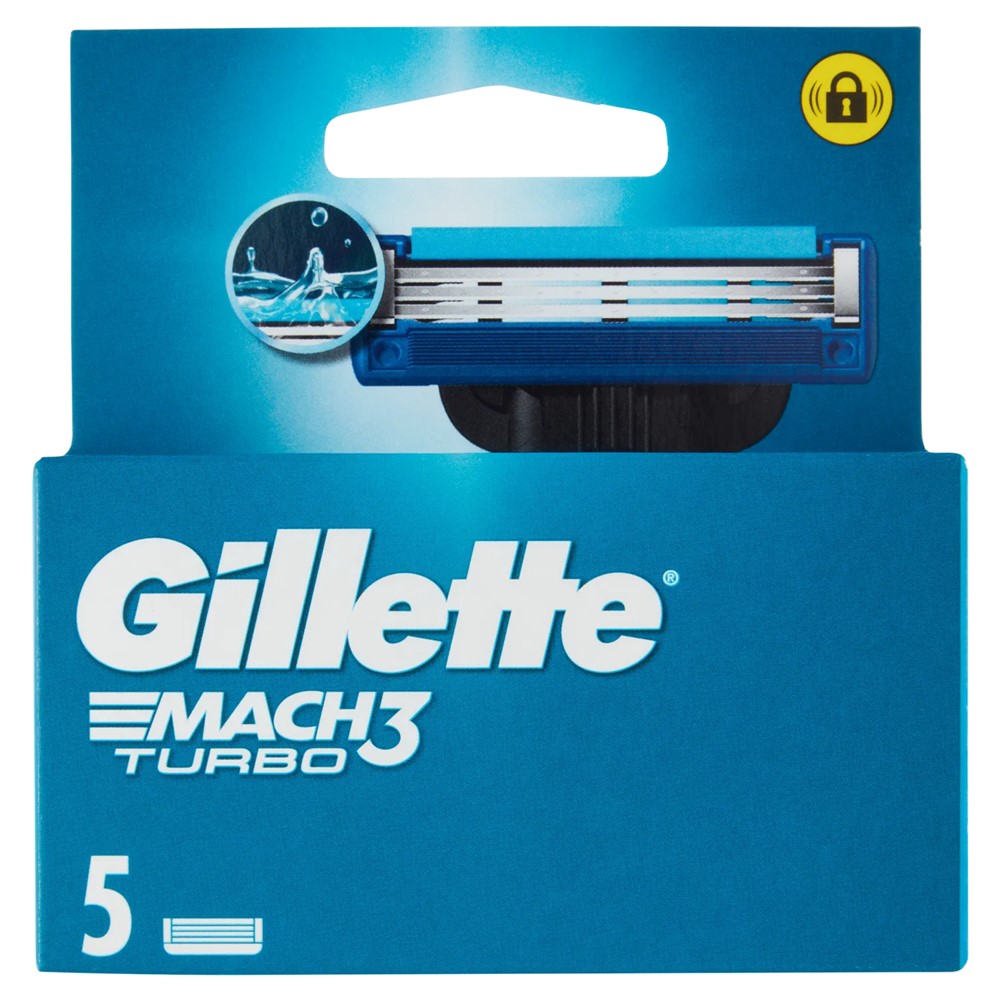 Replacement heads, Gillette, Mach 3, turbo, 5 heads, 1 pack