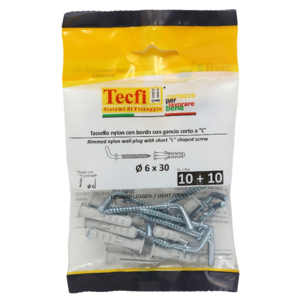 You're reviewing:Rimmed Nylon plug w/short "L" wood screw w/ring, zp, Ø 6x30-4.5x35mm, Bag 10
