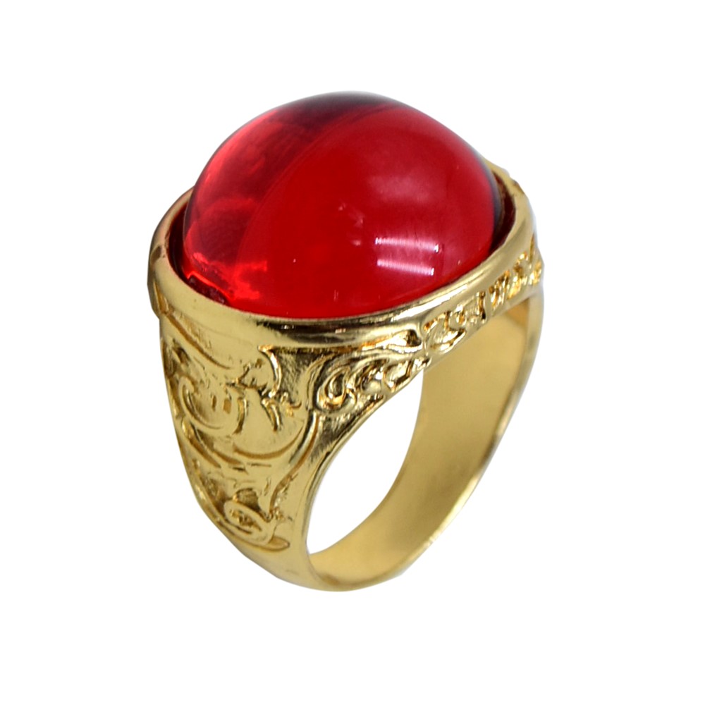 A beautiful gold ring with a red ruby of plastic material. Complements your outfit with this magnificent jewel. Suitable for dressing gypsies, priests, etc.