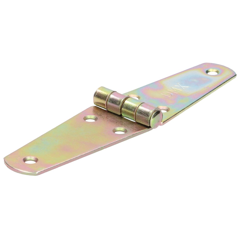 Braided triangular hinge, made of galvanized zinc material, with dimensions of 15x3.5x0.2 cm, in golden color. The constituent material is resistant to use, heavy weights, rust or abrasion. It can be used for mounting windows, mounting the doors of countertops or shelves, mounting interior doors or for other uses.