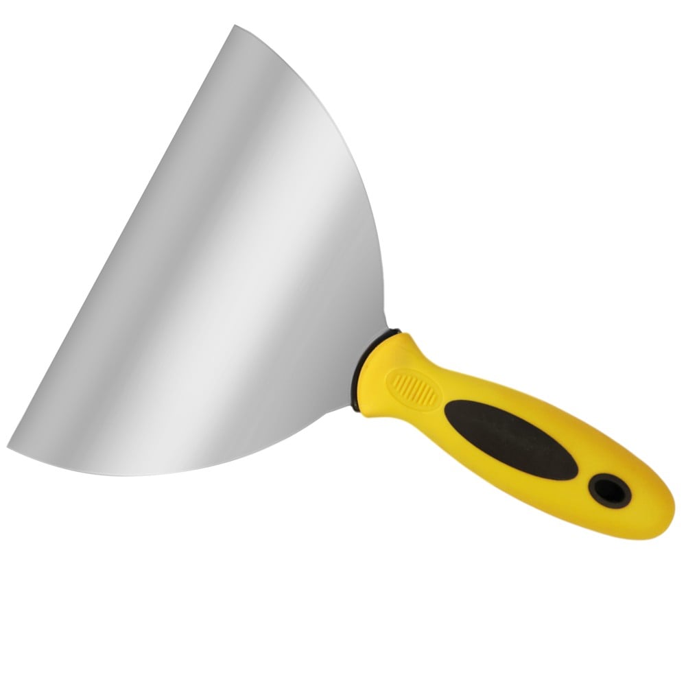 Dekor trowel, 180 mm in size, is made of special steel that maintains its shape despite deformation and has a plastic handle. It is used for applying all types of putties, plaster and parquet work.