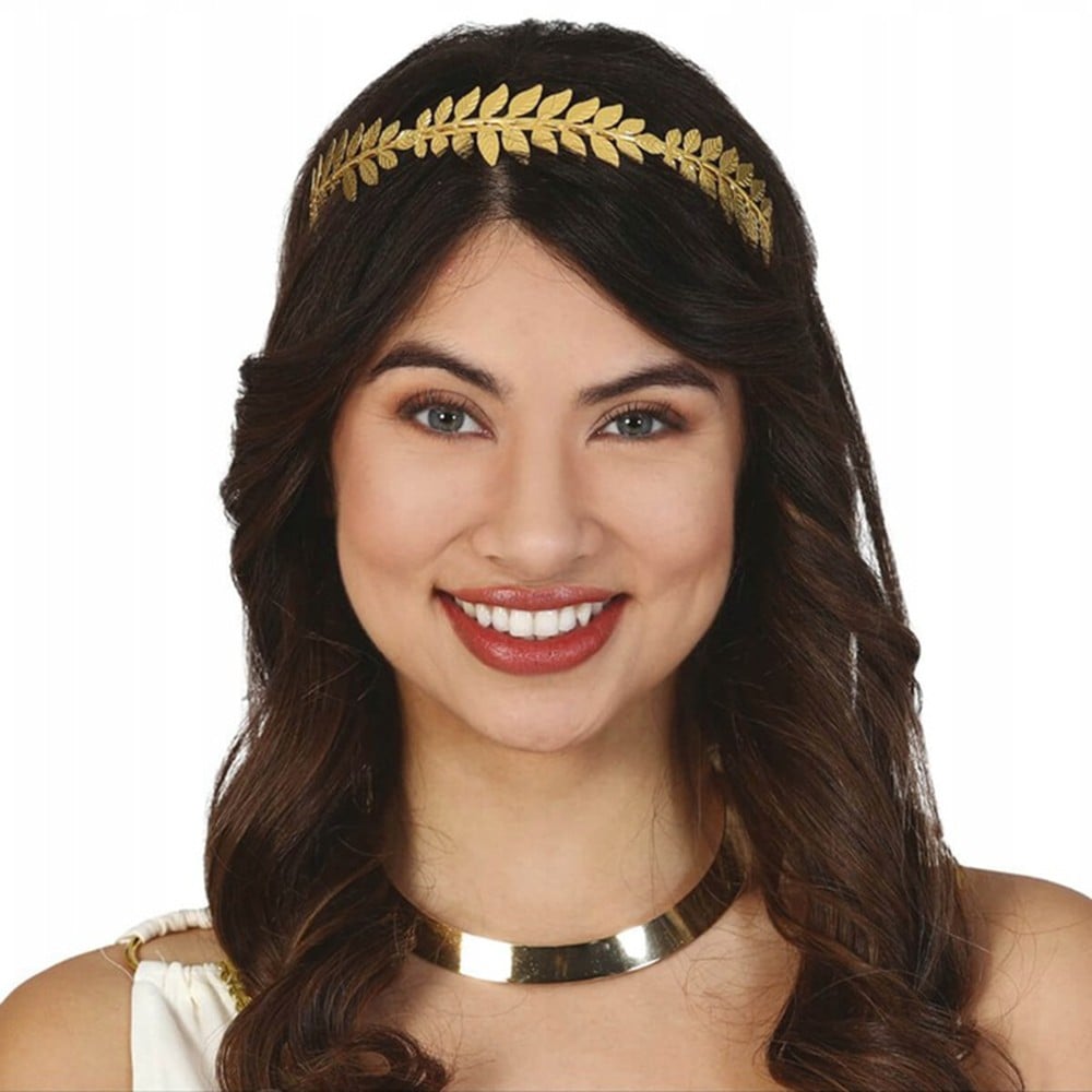 Roman tiara with laurel leaves, made of plastic material, in golden color. It is used as an accessory for different Halloween or carnival outfits.
