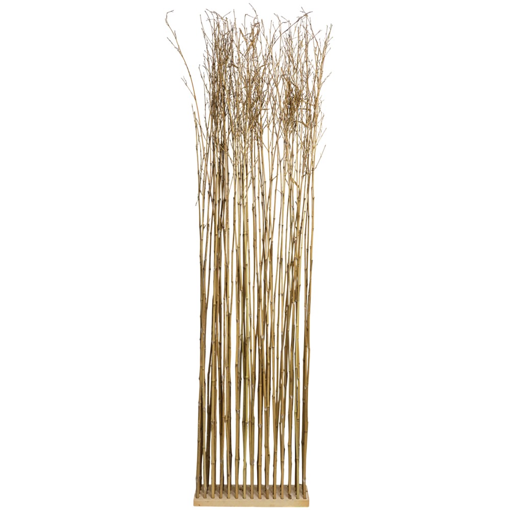 The room divider made of natural bamboo measuring 50x200 cm is a functional and aesthetic solution for dividing interior spaces. This divider brings a feeling of warmth and closeness to nature, thanks to the sustainable and natural bamboo material used in its construction. The simple and elegant design makes it suitable for various environments such as homes, offices or commercial premises, creating private areas without losing natural lighting and airy space. With dimensions of 50 cm in width and 200 cm in height, the divider is tall and narrow, offering visual separation of spaces without taking up much space. This product is ideal for those looking for a beautiful and practical way to organize and divide their environments in a natural and harmonious way.