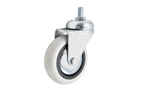 This caster helps move heavy loads on smooth, hard surfaces and finished concrete floors where quiet movement and floor protection are vital. It attaches easily with a plate and 4 screws.