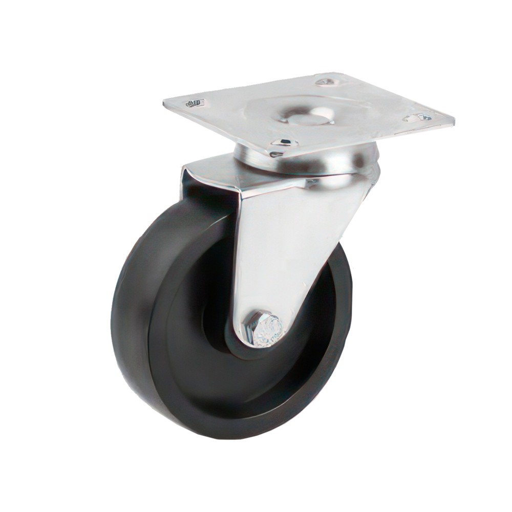 This caster helps move heavy loads on smooth, hard surfaces and finished concrete floors where quiet movement and floor protection are vital. It attaches easily with a plate and 4 screws.