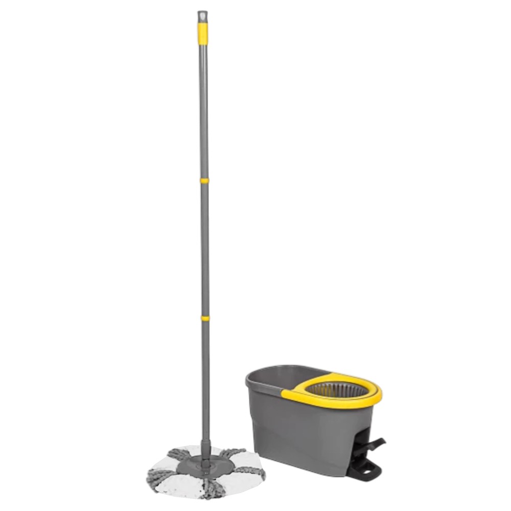 Practical cleaning bucket with rotating system, designed for fast and efficient cleaning. The combination of aluminum and plastic materials ensures durability and longevity, while the rotating mechanism makes it easy to wring out the cloth without using force. Ideal for home and professional use.