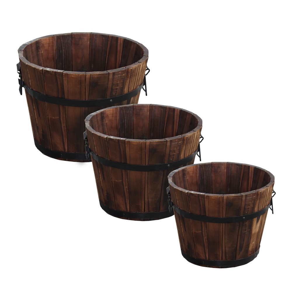 The wooden barrel flower pot is perfect for any decor, yard or garden. Constructed from 100% natural wood treated against moisture, insects and reinforced with metal rings, this vase is beautiful for many years to come. The stable construction and antique look make this vase without comparable. Give your garden simplicity and a dramatic look with Gardesign collection of products.