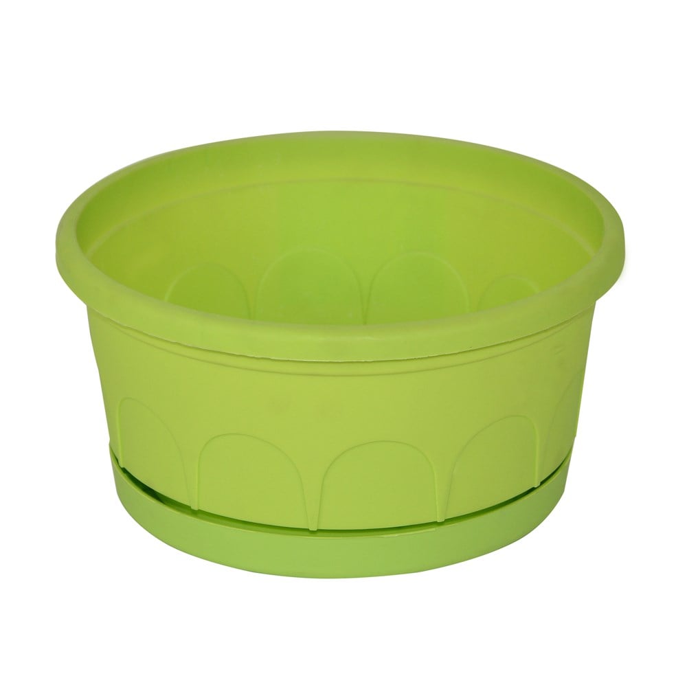 Round flower pot, LEADER, plastic, green, Ø20 xH10 cm