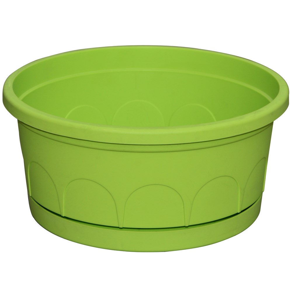 Round flower pot, LEADER, plastic, green, Ø30 xH13 cm
