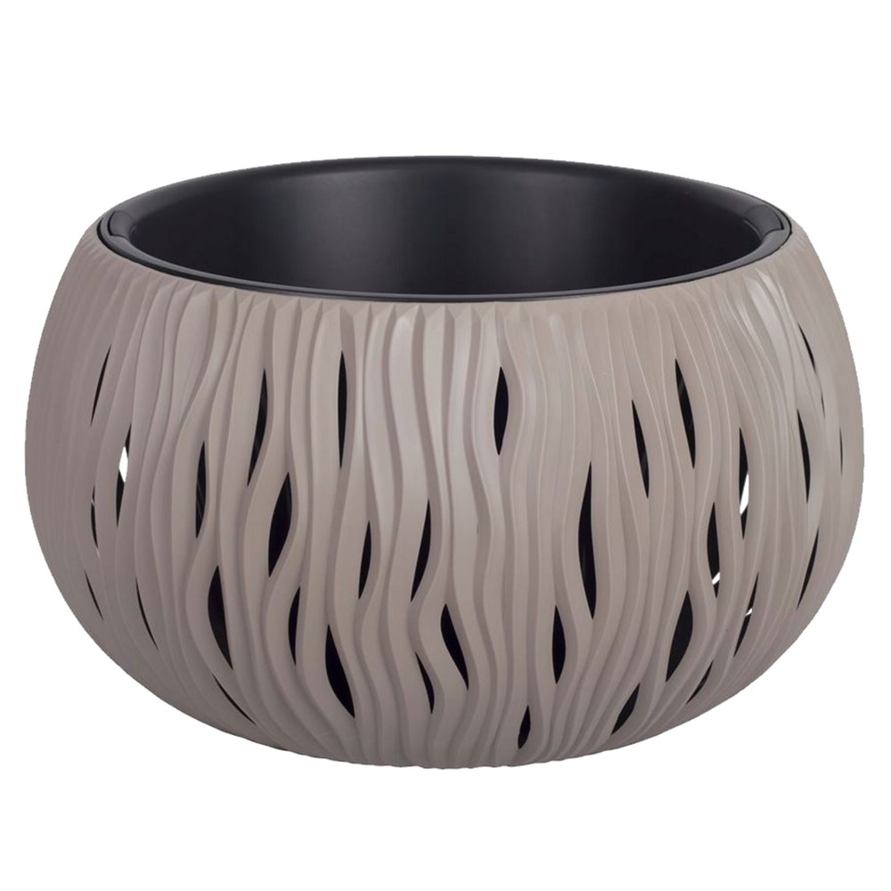 Round flower pot, SANDY BOWL, plastic, mocca, Ø37 xH21 cm, 9 lt