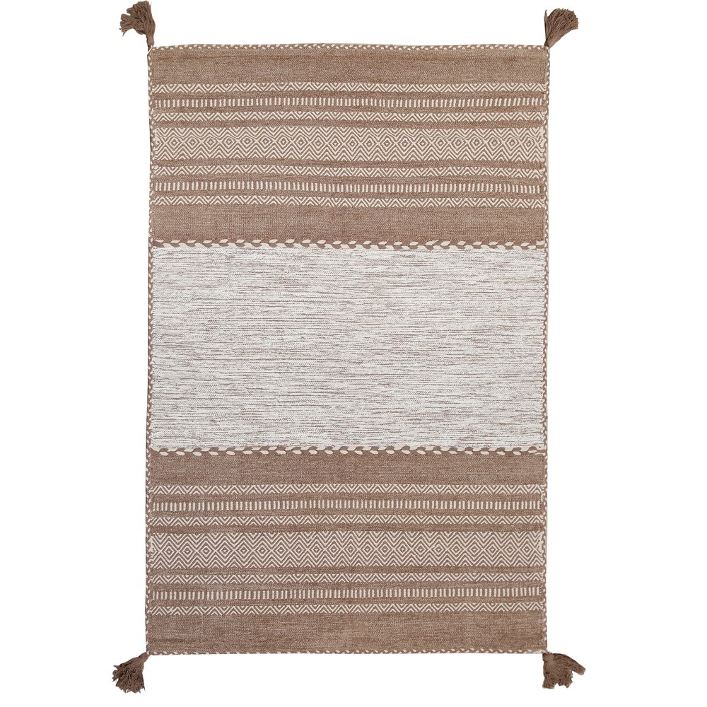 The described rug is an important product for your home, designed to enhance the aesthetics and style of your room. This rug is composed of 60% cotton and 40% viscose, and has a combination of beige and natural brown colors. The dimensions of the alley are 120x170 cm. The combination of cotton and viscose materials provides an alley that is soft on the feet and has an elegant look. Natural beige and brown colors offer a natural look that harmonizes with many different environments within your home. Runners are an important product for your home because they help keep your feet fresh and contained. This alley will provide a sense of comfort and serve as a beautiful decorative product for your home, enhancing its aesthetics and atmosphere.
