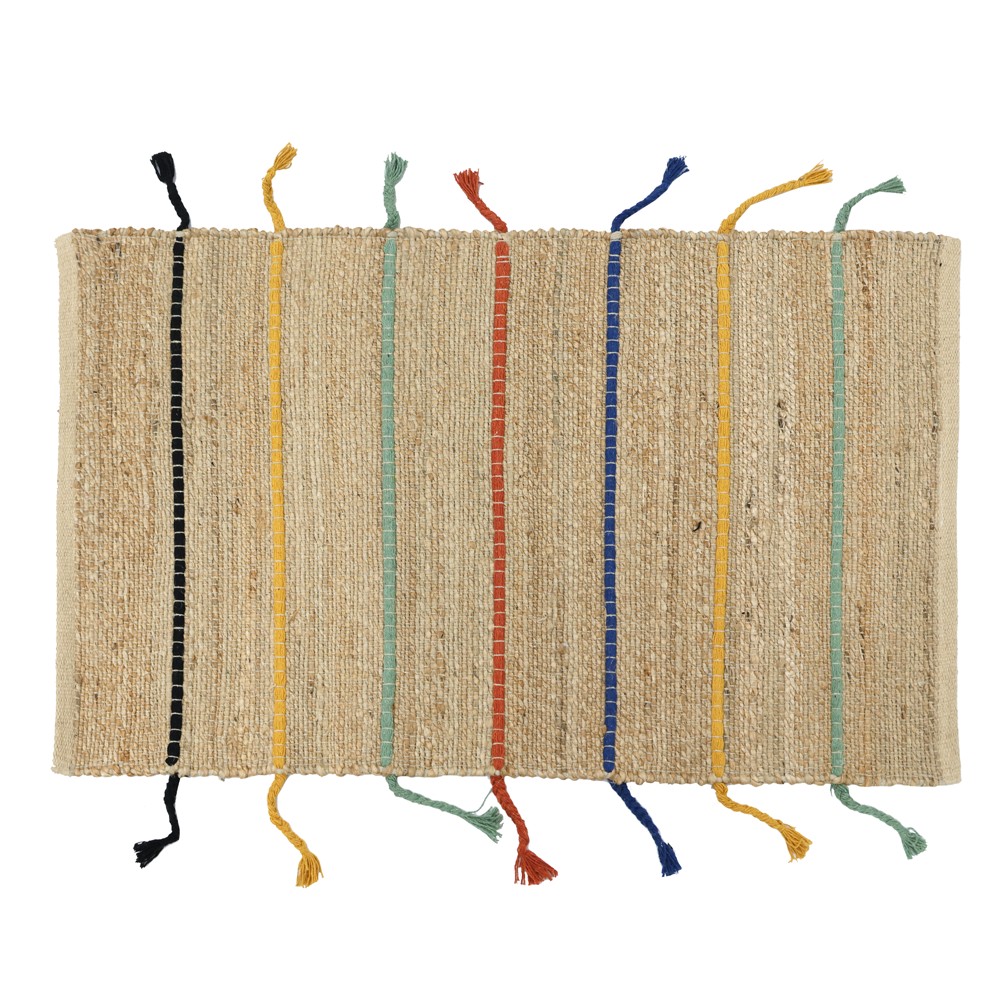 Rug, 90% jute/10% cotton, striped beige, 55x90 cm