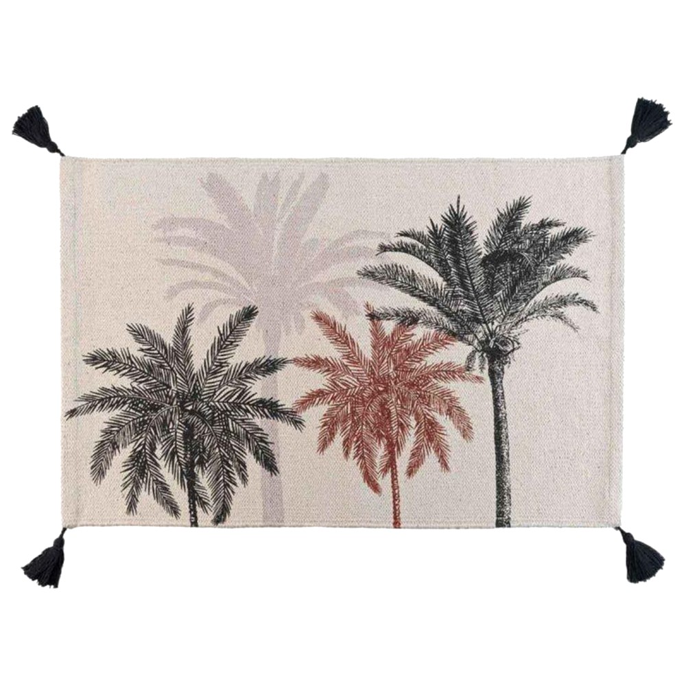 Rug, polycotton, white with palmanova design, 60x90 cm