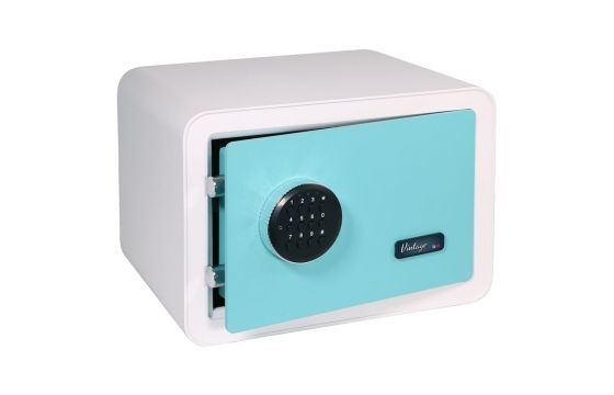 VINTAGE BTV safe for home and office, safe and elegant, with 6mm door thickness and 3mm body thickness. White color, dimensions 250 x 350 x 280mm, key and electronic opening method, an 8-digit emergency code. safe weight 16 kg and internal capacity 17 Lt.