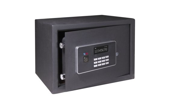 VISION-30 BTV safe for home and office, safe and elegant, with a door thickness of 4 mm and a body thickness of 1.5 mm. Automatic internal lighting when the safe door is opened. Black color, dimensions 300 x 380 x 300mm, opening method with key plus emergency and electronic key, an 8-digit emergency code. safe weight 11 kg and internal capacity 26 Lt.