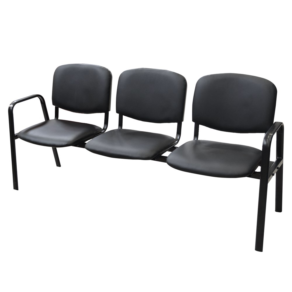 A wonderful visitor 3-seated chair with textile clothing is sure to satisfy your visitors or customers offering them a nice comfort while they are waiting. Textile upholstery with foam padding and iron frame in black finish make this comfortable chair.