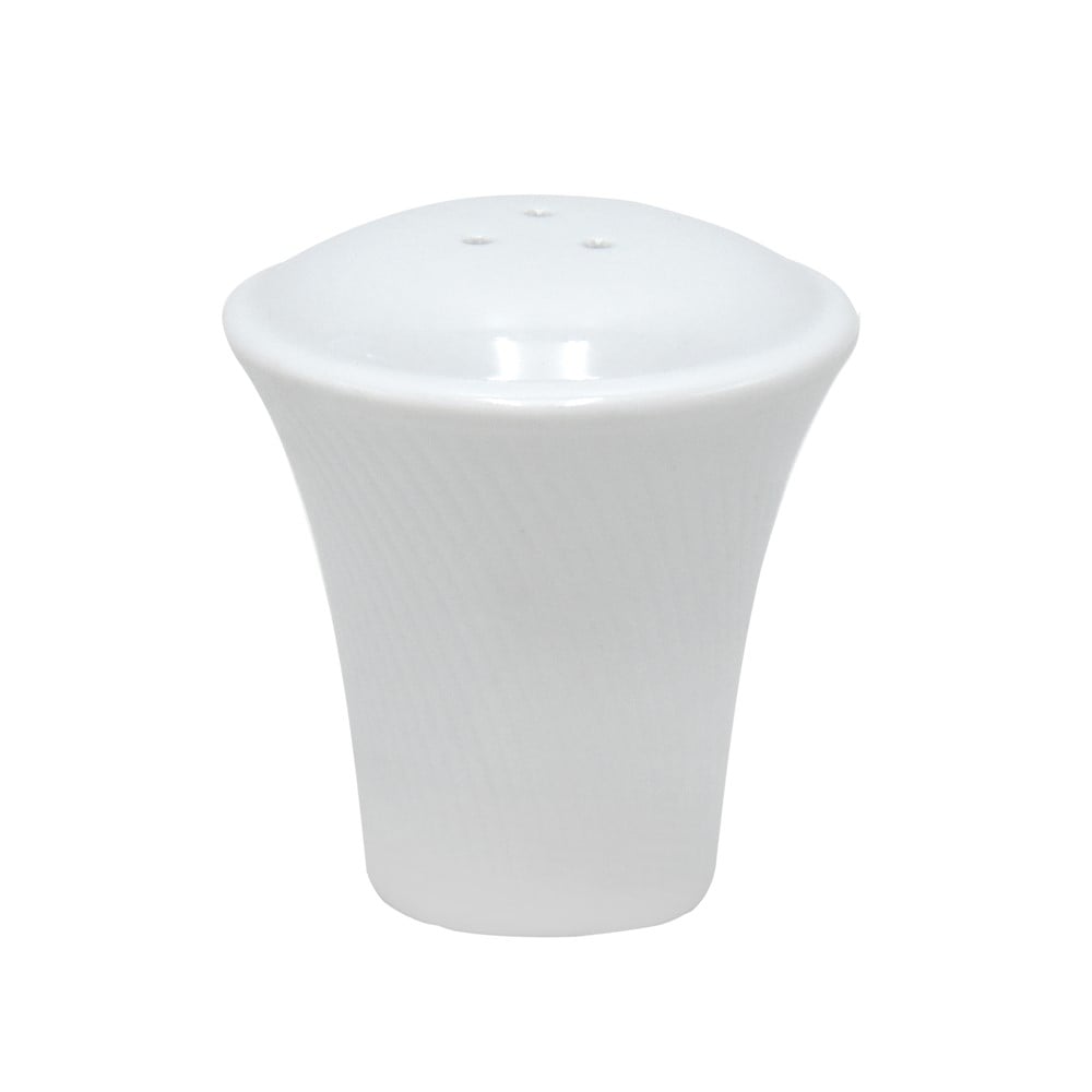Small salt shaker which serves very well to hold and shed salt. The porcelain material is a good quality at a competitive price