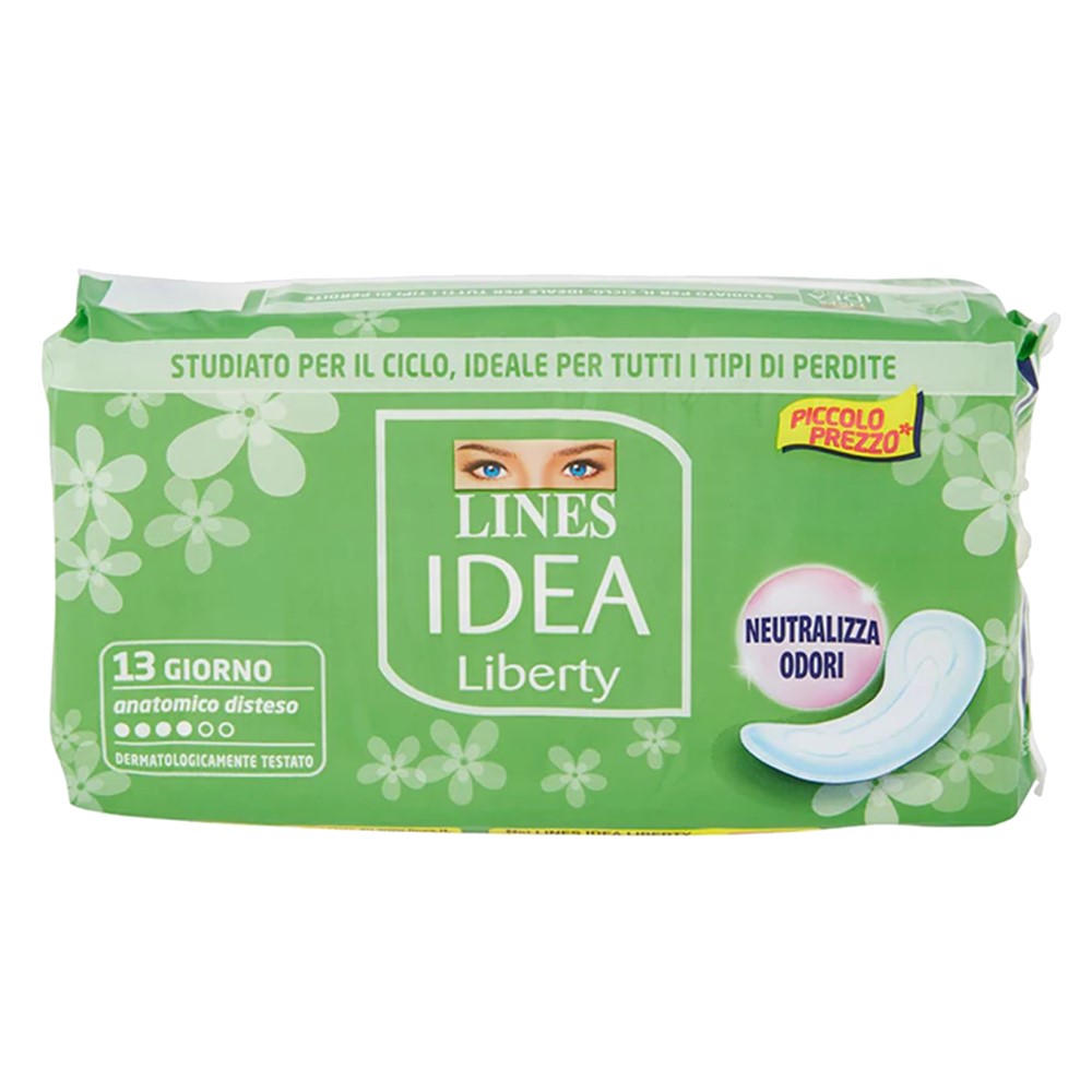 Napkins for hygiene protection. Lines Idea Liberty technology: combines the great thinness and absorbency of all Lines to give you protection and comfort. Neutro-Fresh anti-odor system: acts quickly and for a long time.