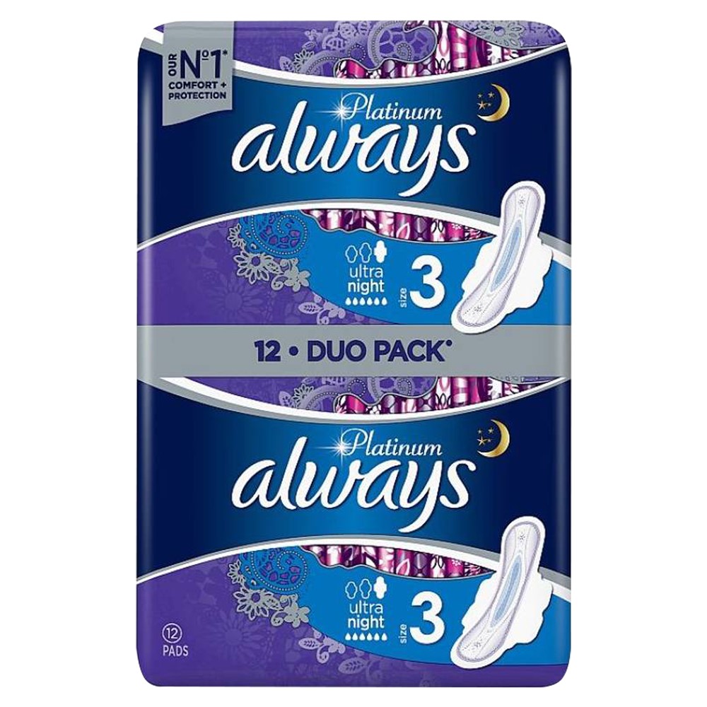 You're reviewing:Sanitary pads, Platinum Collection Duo Ultra Night Size 3, Always, 12 pieces