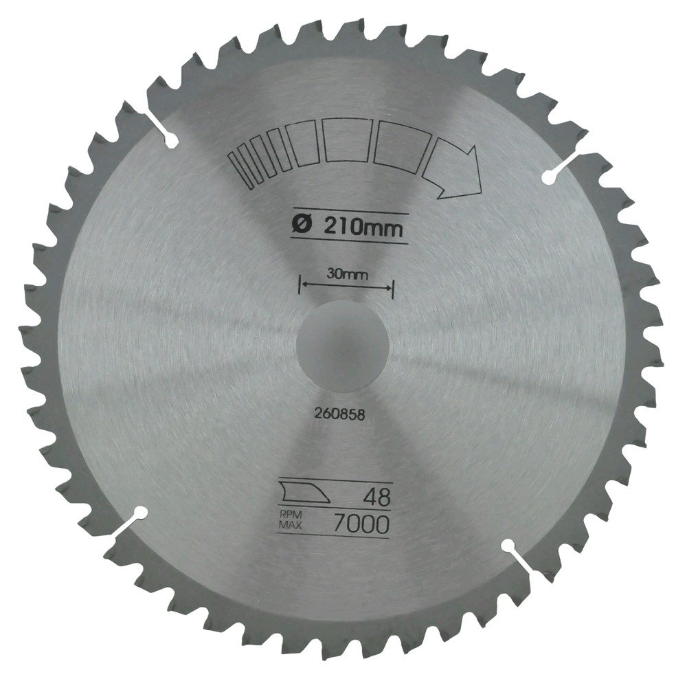 Circular saw disc professional 210x16mm with 48 teeth to cut all types of wood. Realizes a cut fast, clean and precise.Built with stainless steel body ensures a high durability. Teeth of vidiumi give you the opportunity to sharpen